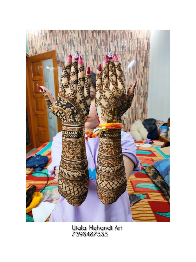 Agar aap Rampur me best bridal mehndi artist dhoondh rahi hain, to Ujala Mehandi Art aapke liye ek perfect choice hai. Hum dulhano ke liye traditional, Arabic aur modern bridal mehndi design banate hain jo shaadi ke look ko aur bhi khoobsurat bana dete hain.